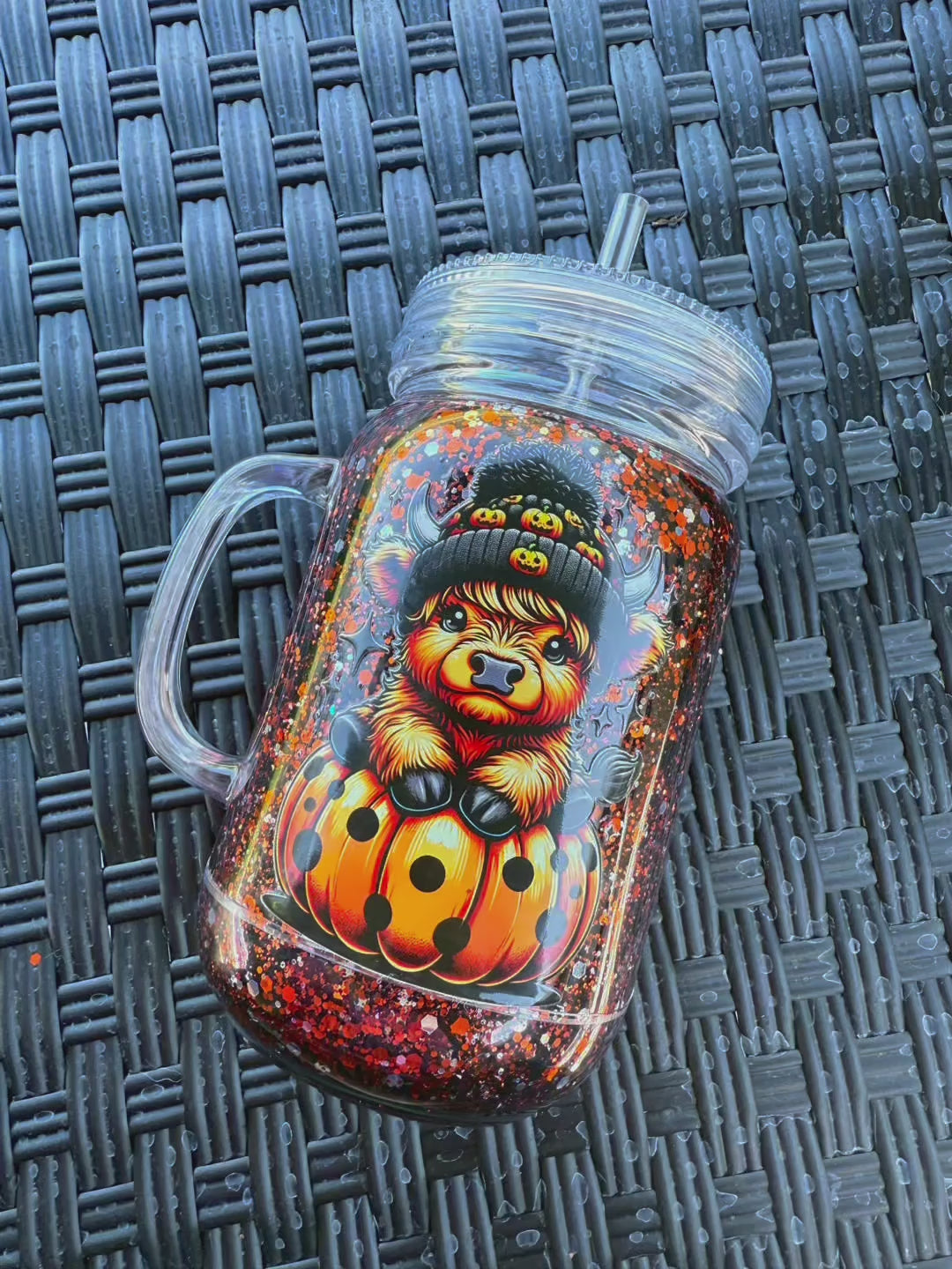 20oz, comes with lid and straw, look at this adorable guy! Suspended flow!