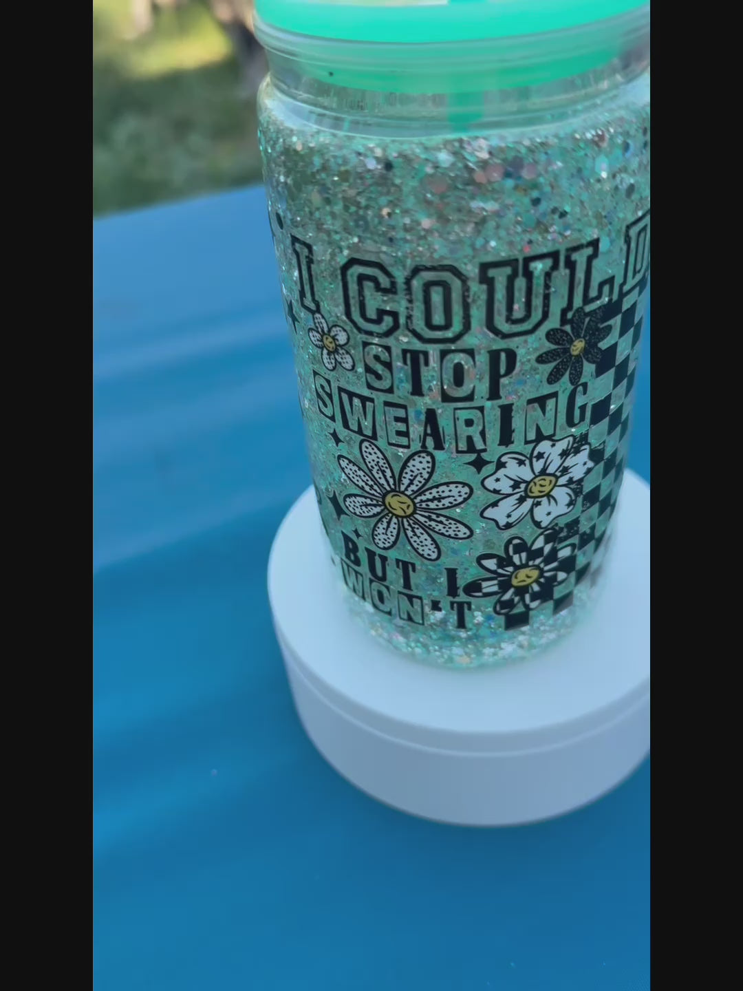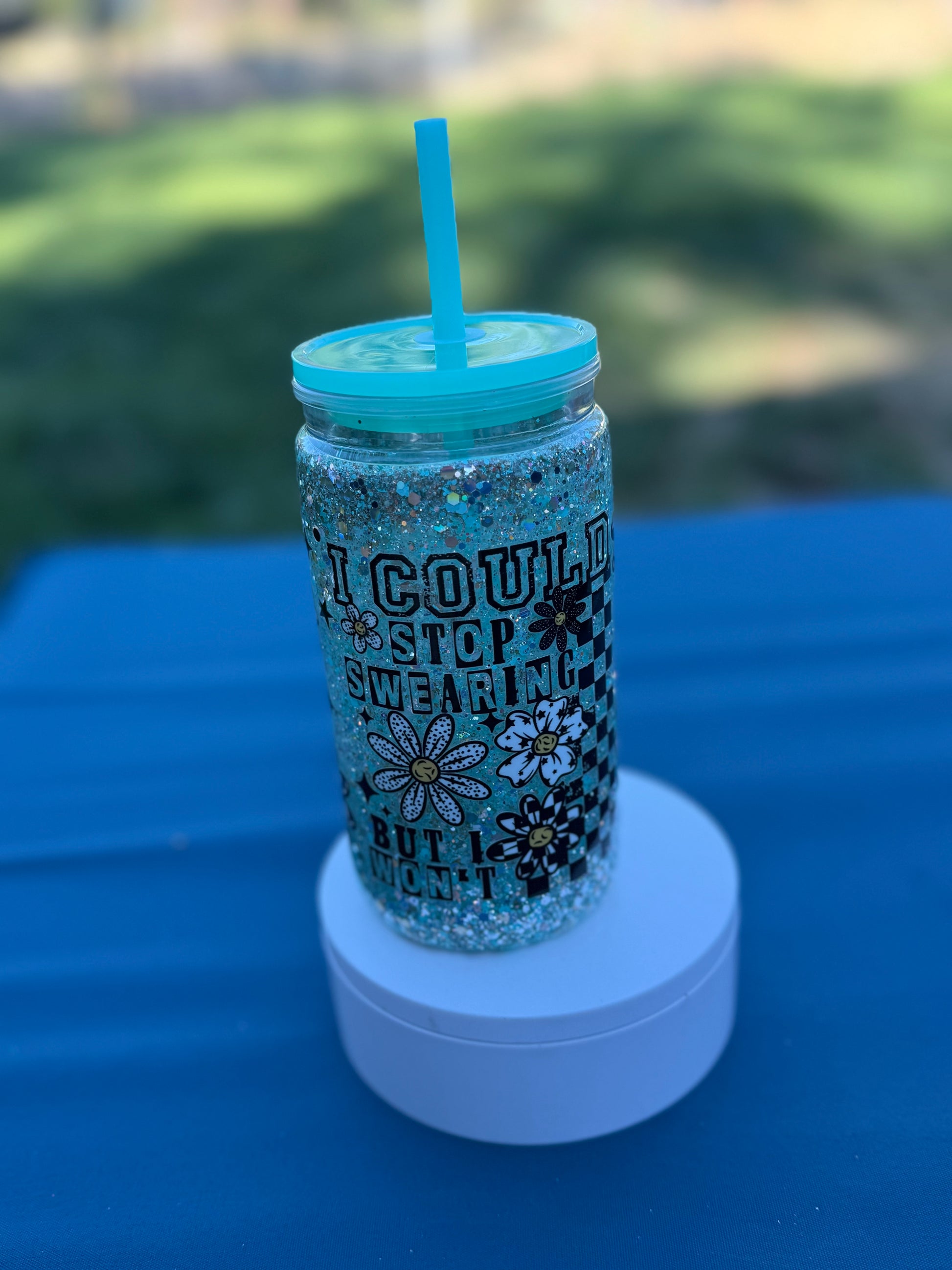 "I could stop swearing, but I won't" 16 oz cute as ever snow globe cup! Slow flow.